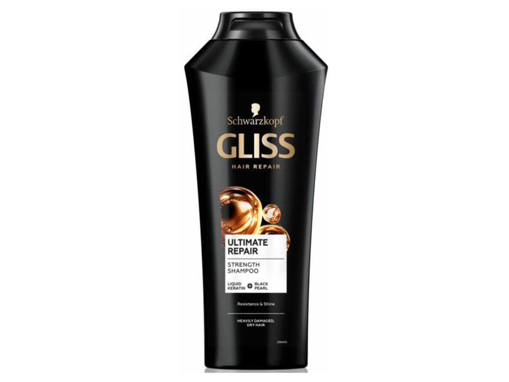 Pre krásu a regeneráciu vašich vlasov! Posilňujúci šampón Gliss Hair Repair Ultimate Repair vďaka komplexu tekutého keratínu a výťažku z čiernej perly regeneruje i veľmi poškodené vlasy a cielene vypĺňa štrbiny vo vlasovom vlákne. Vlasová štruktúra je obnovená a vlasy získajú väčšiu odolnosť. Gliss Ultimate Repair šampón na vlasy redukuje lámavosť vlasov až o 90 % a poskytuje im viac lesku. Pre jednoduché rozčesávanie, hĺbkovú regeneráciu a väčšiu odolnosť vlasov je tu línia Gliss Ultimate Repair!